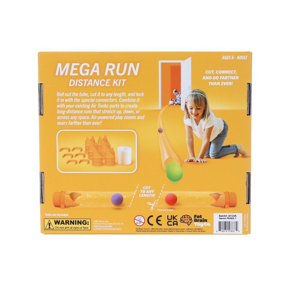 Air-powered play zooms and soars as far as your imagination can stretch with the Air Toobz Mega Run Distance Kit! Cut, connect, and go farther than ever before!