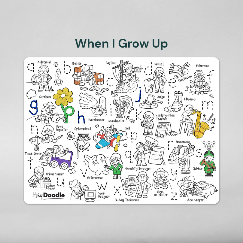 - Each mat is thoughtfully designed and features an educational theme (ie space, letters, farm animals, numbers) so your curious kids can learn as they trace, draw and colour!