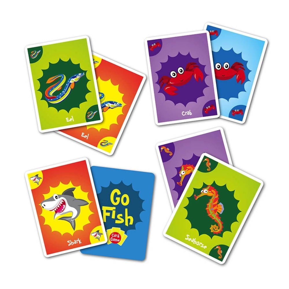 Gather your friends and family and take turns to match two of the same sea creatures. If you do not have the card the person is asking for, tell them to “GO FISH!” When the fishing is finished, the person with the most pairs wins! A great beginner game for kids - includes jumbo sized cards.