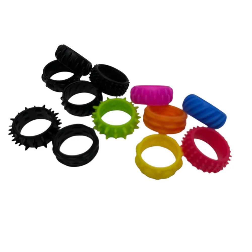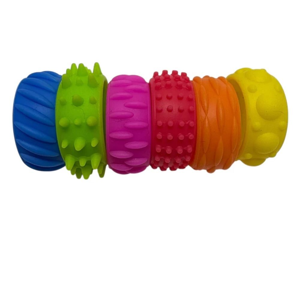 Each band features a unique textured exterior with a smoother inner surface for comfortable wear. The bands can also be inverted to offer an alternative sensory experience and a slightly reduced fit.