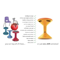 It is impossible to actually sit on a Jari Activstool, no lying back, no slouching and definitely no sitting still. With a rotating convex base Jari forms one leg of a stable tripod, your own legs provide the other two parts. That means you are constantly flexing, adjusting and moving; the ideal way to stay focussed and concentrate.