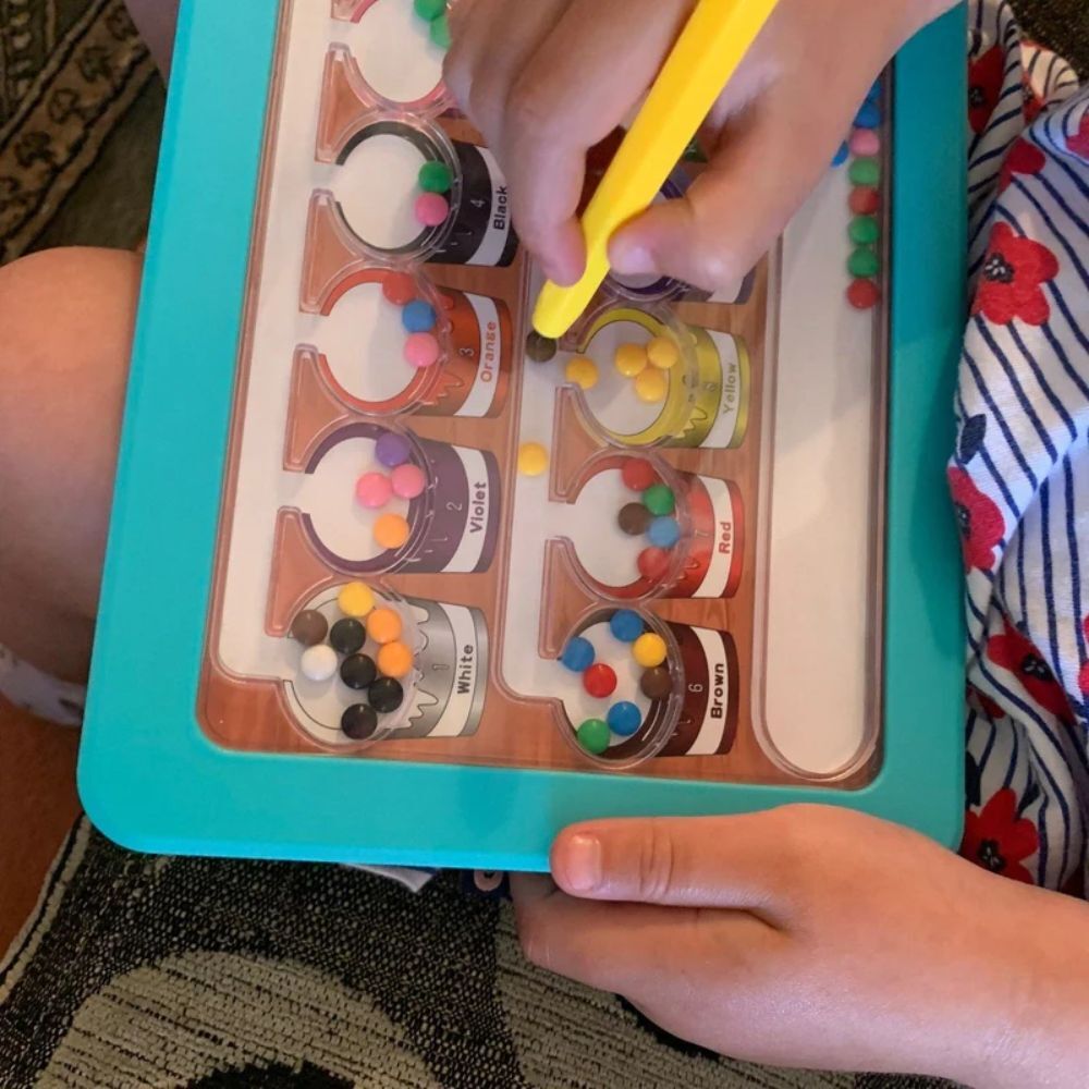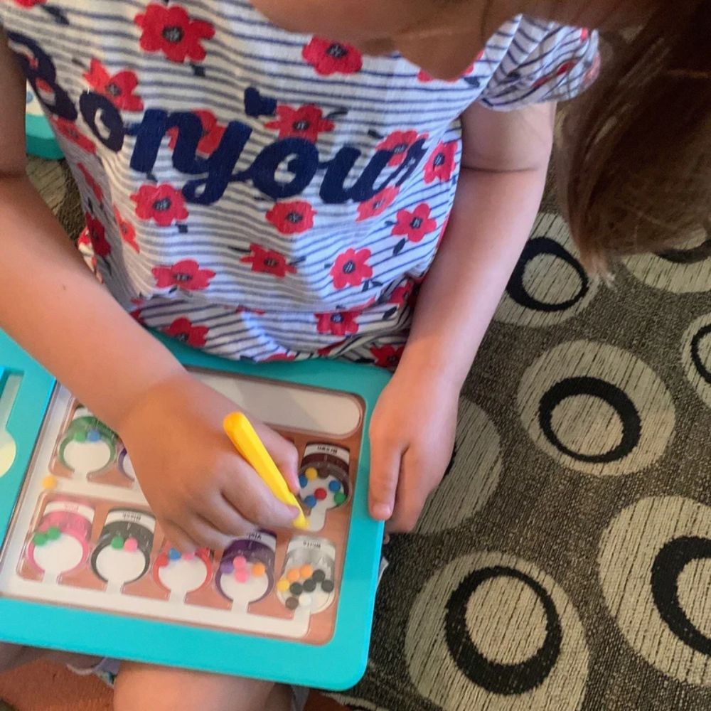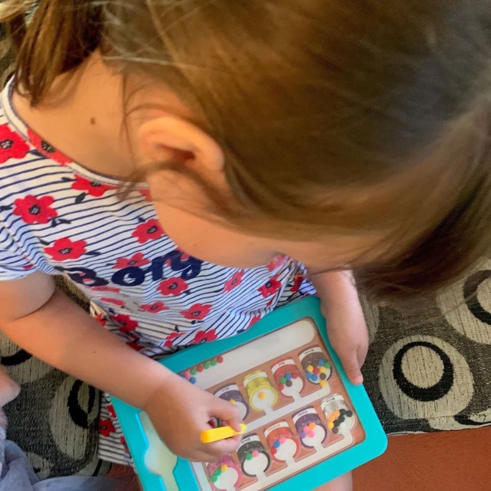This magnetic maze helps children learn through play by combining colour matching, counting, and problem solving.