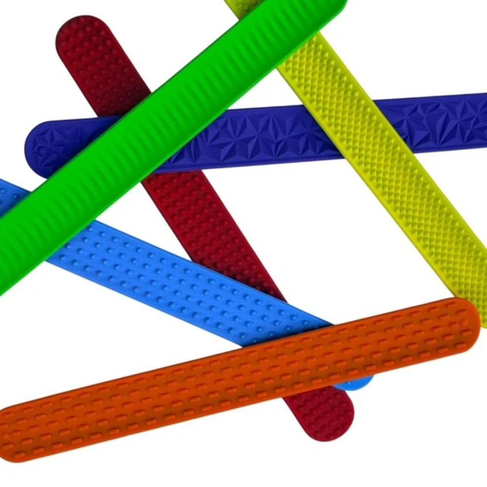 These textured silicone slap bands provide easy, on-the-go sensory support. Designed to be worn on the wrist, they offer quick access to calming, tactile input throughout the day.