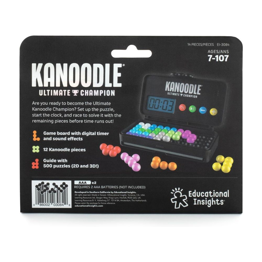 PUZZLE GAME INCLUDES: 12 Kanoodle pieces, battery-powered timer, and guide with 500 new 2D and 3D puzzles, plus the bonus #KanoodleChallenge. Ages 7+, Requires 2 AAA batteries (not included)