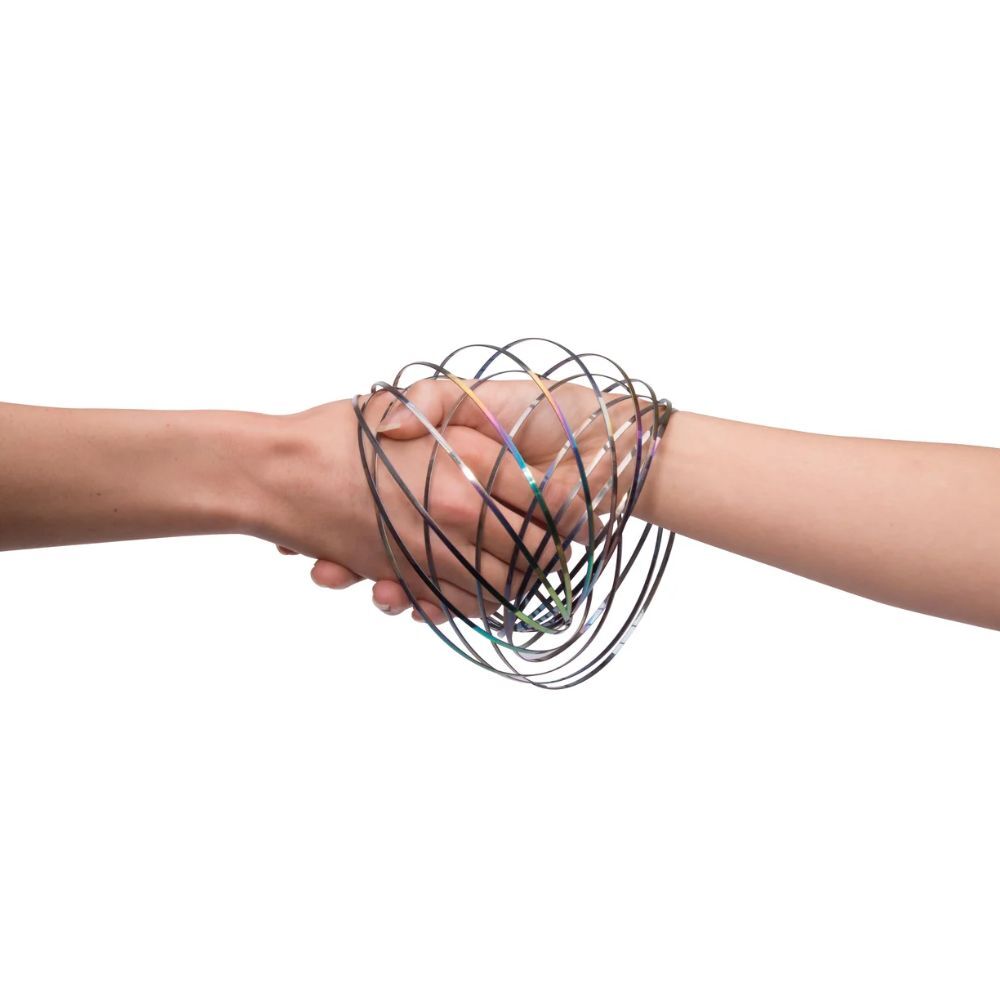 Discover the hypnotic fun of this Kinetic Coil Sculpture! Made from a single piece of electroplated stainless steel, it springs from flat to a 3-dimensional helix, offering a mesmerizing visual and tactile experience. Roll it along your arm, transfer it between friends, or watch it spring and twist—perfect for stress relief, fidgeting, and endless sensory play.