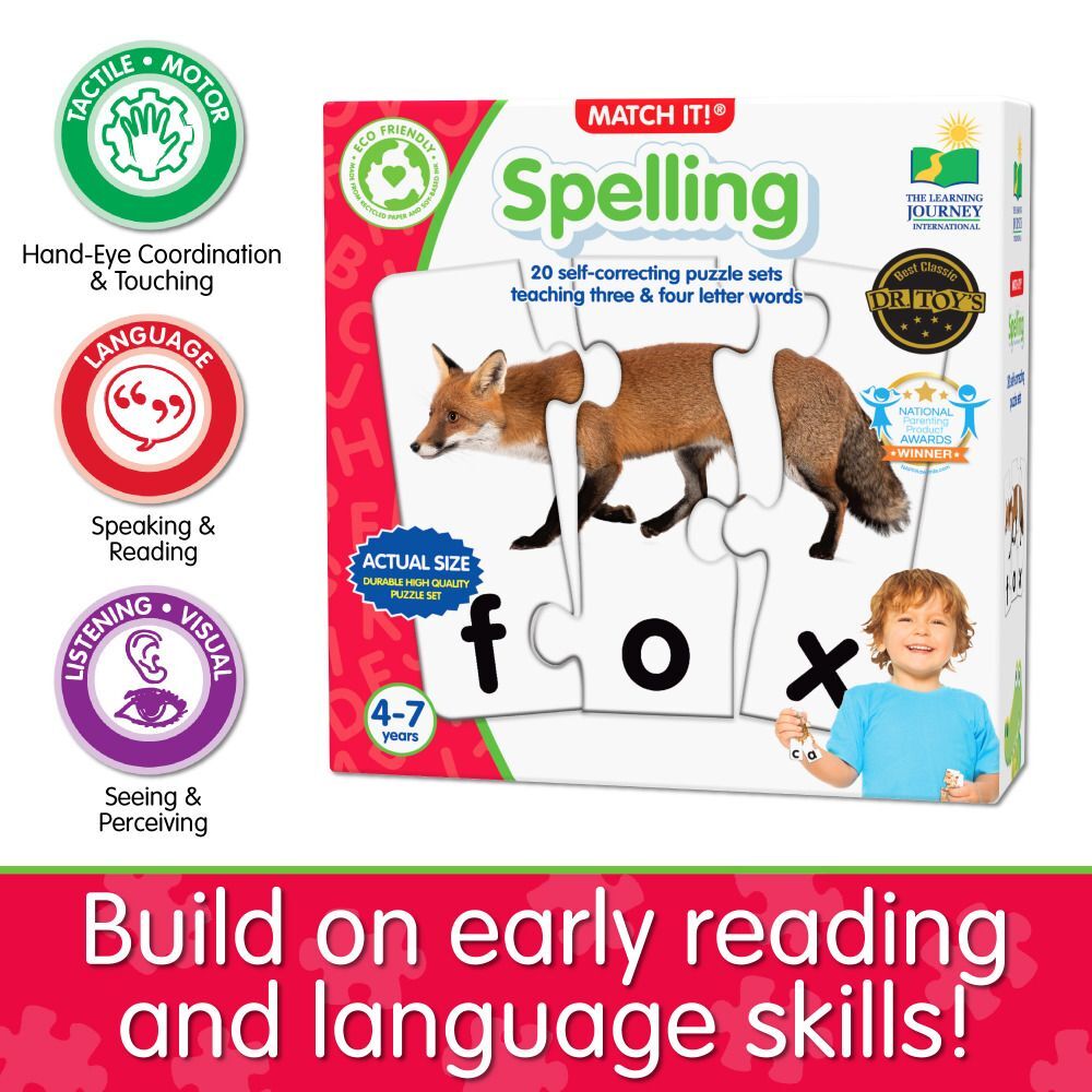 Make spelling exciting with Match It! Spelling, a hands-on puzzle set designed to turn learning into play.
