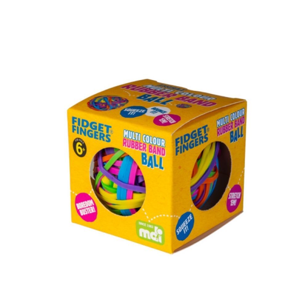 Whether you unravel a band to fix your homework, shoot for the high score of most bounces, or simply enjoy the delightful mishmash of colours on your desk, this ball brings quirky energy to any situation.
