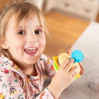 The toothpick screws into the burger to hold all the ingredients together. The bubbles in the silicone lid of the drink cup pop beautifully. Dip the felt fries into the sauce cup - the top flips from ketchup to mustard.