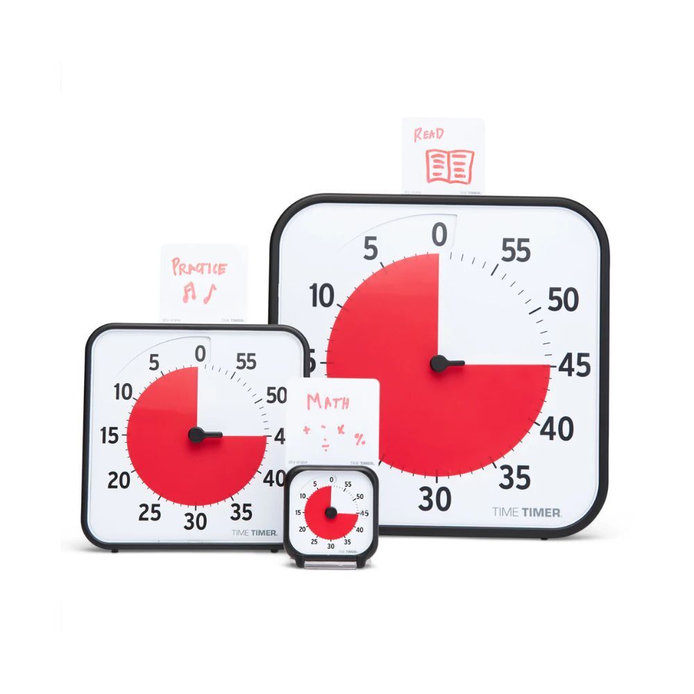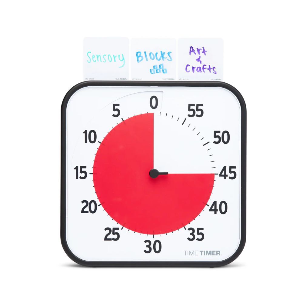 - First/then activities — The Time Timer Original 8" can fit up to 2 Dry Erase Activity Cards across the top, making it perfect for First/Then Activities and Visual Schedules.