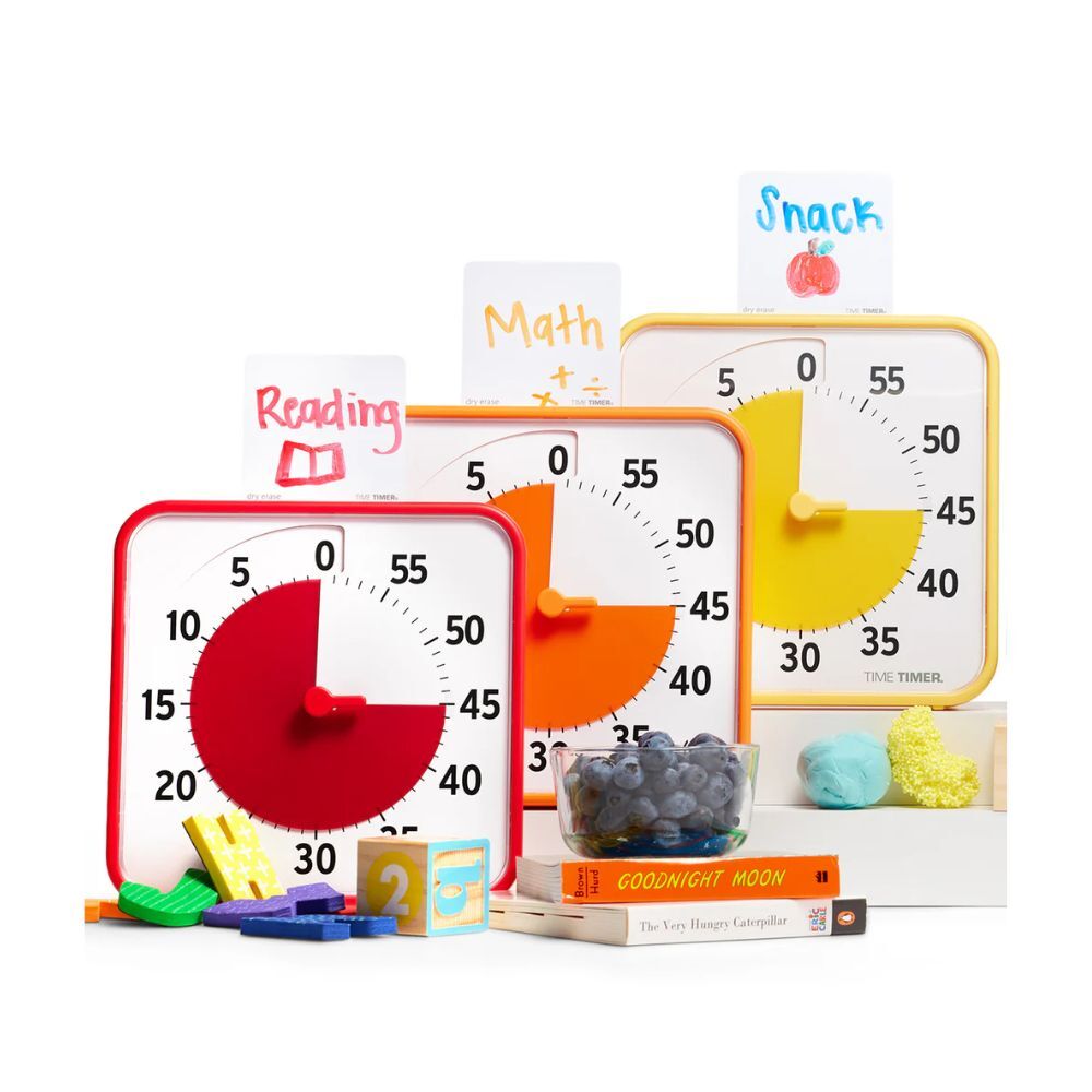 - Create visual schedules — Use 3 Dry Erase Activity Cards across the top of the Time Timer Original 12" to create a visual schedule or a sequence of events.