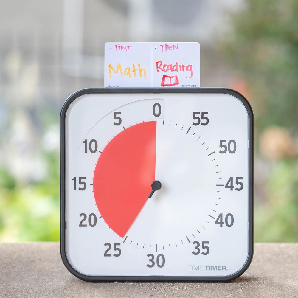 Each card is purpose-built to help users see time and tasks in a way that just clicks. Whether you’re drawing out elapsed time, setting up a First/Then sequence, or writing out simple instructions, this system transforms your timer into a personalized support station.