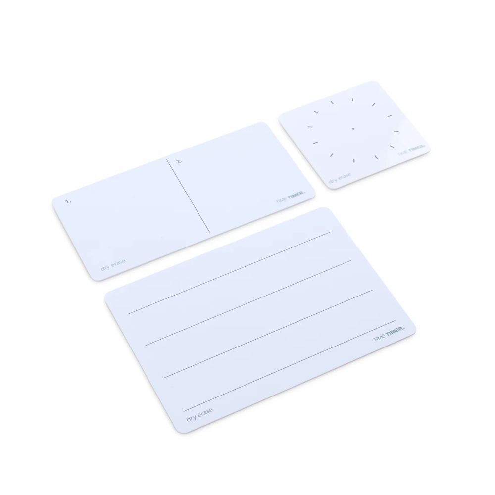 This all-in-one bundle includes three versatile dry erase cards and a red dry erase marker, perfectly sized to slide into the patented card slot on all Time Timer Original (3rd Generation - manufactured 2021 and beyond) models including 3", 8", and 12", plus the RETRO, Braille, and Learning Centre Classroom Sets. This built-in feature is a Time Timer exclusive.