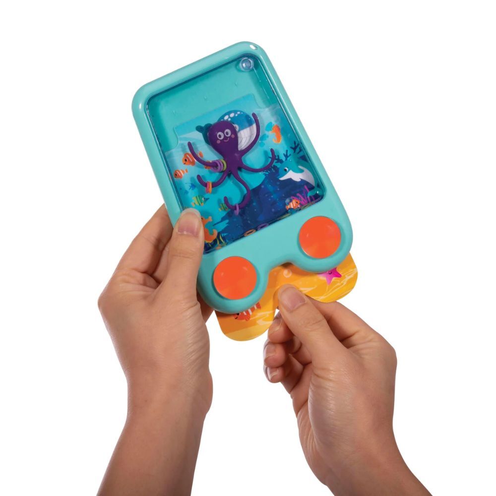 Simply press the button to send rings floating upward and aim to hook them onto the octopus’s legs. With interchangeable backgrounds and no batteries required, it’s a fun, screen-free activity you can take anywhere for endless entertainment.