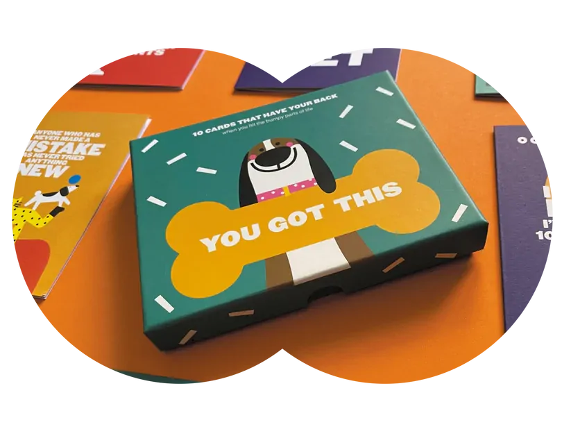 A set of 10 greeting cards (and envelopes) with messages to support anyone going through a bumpy part of life, or simply to remind the people you like that you have their backs!